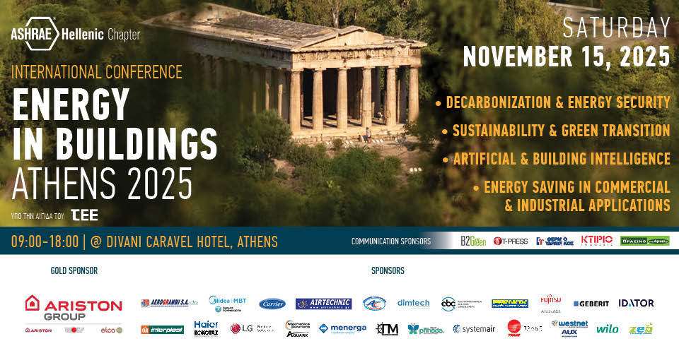 The ASHRAE Hellenic Chapter invites engineers, architects, researchers, and professionals to submit abstracts for the Energy in Buildings 2025 Conference, to be held in Athens, Greece on November 15, 2025. The conference will explore cutting-edge developments in high-performance building design and operation, as well as decarbonization and climate resilience. The official language of the Conference is English.