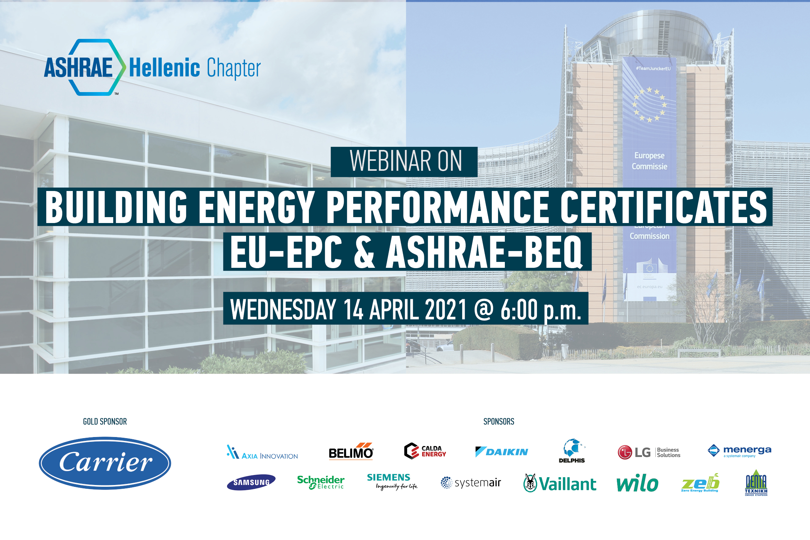 The Hellenic Chapter of ASHRAE is organising on Wednesday April 14, 2021, at 18:00, an electronic technical seminar on the “Building Energy Performance Certificates – EU-EPC & ASHRAE-BEQ”